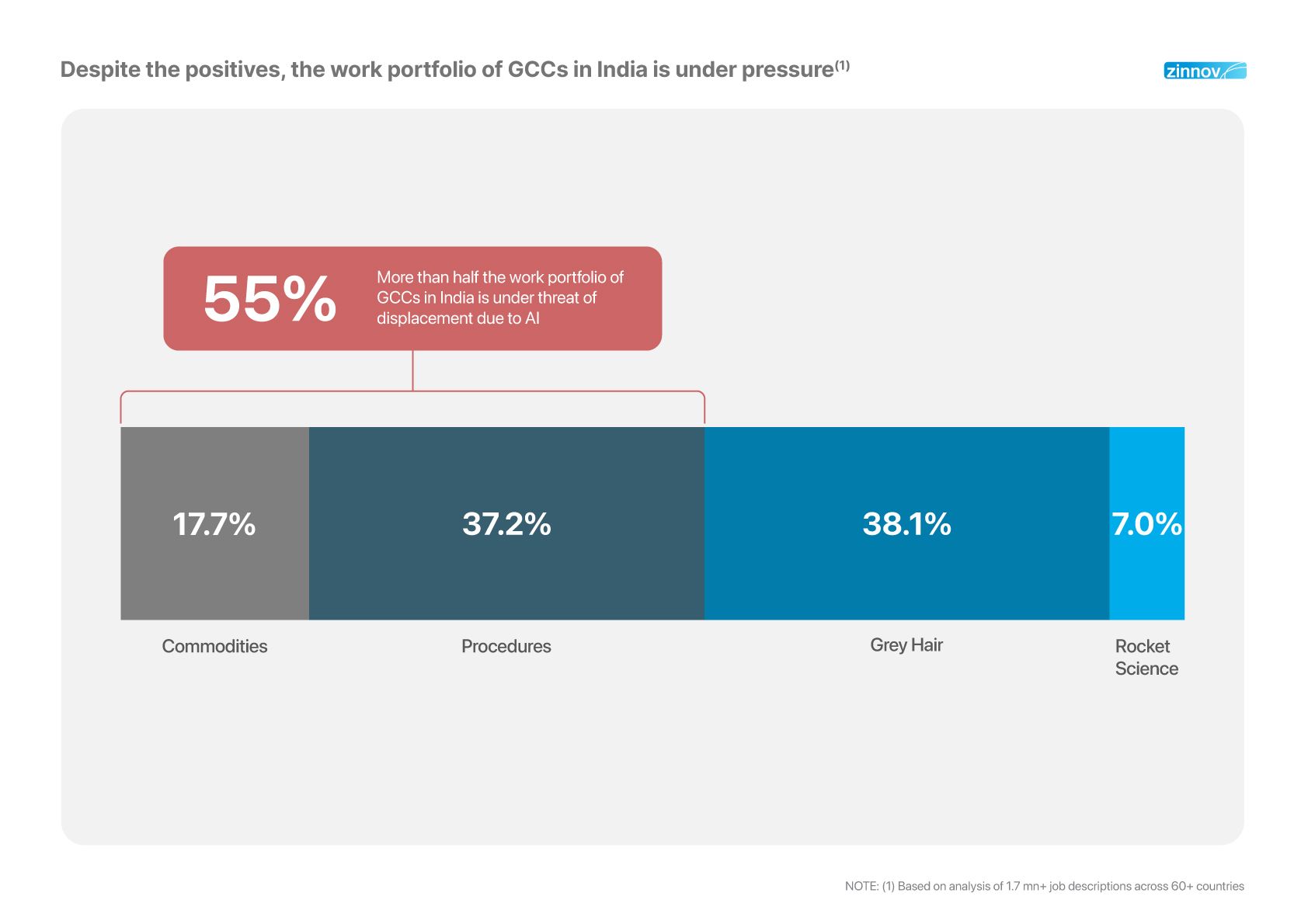 Zinnov’s latest GCC AI Opportunity Report highlights that more than 55% of GCC work portfolios are under displacement pressure, as AI compresses the journey from expertise to automation.