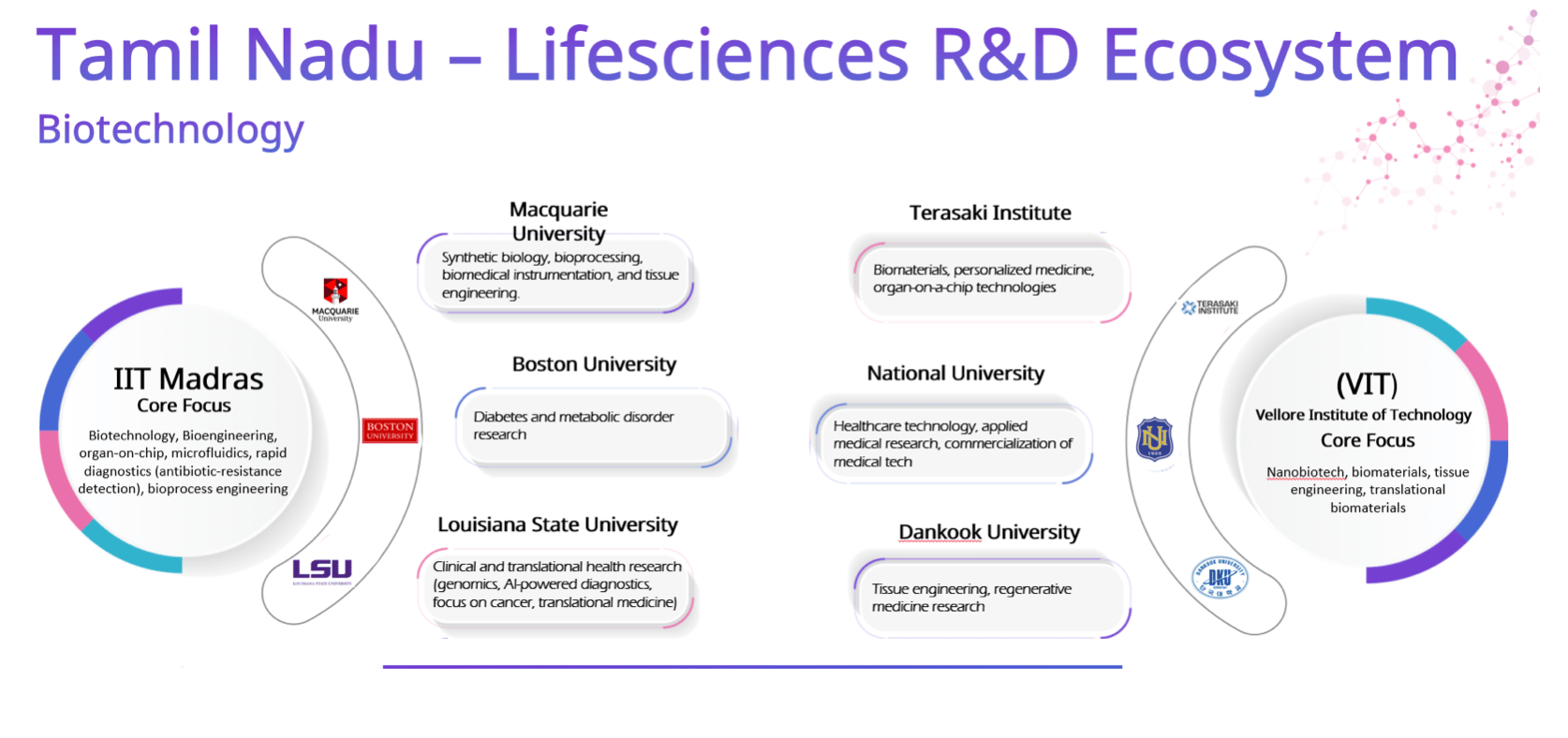 Pharma, biotechnology, and medical technology to cover the whole sector. Research and development, manufacturing, and technology to execute: Tamil Nadu’s complete supply chain in the life sciences space.